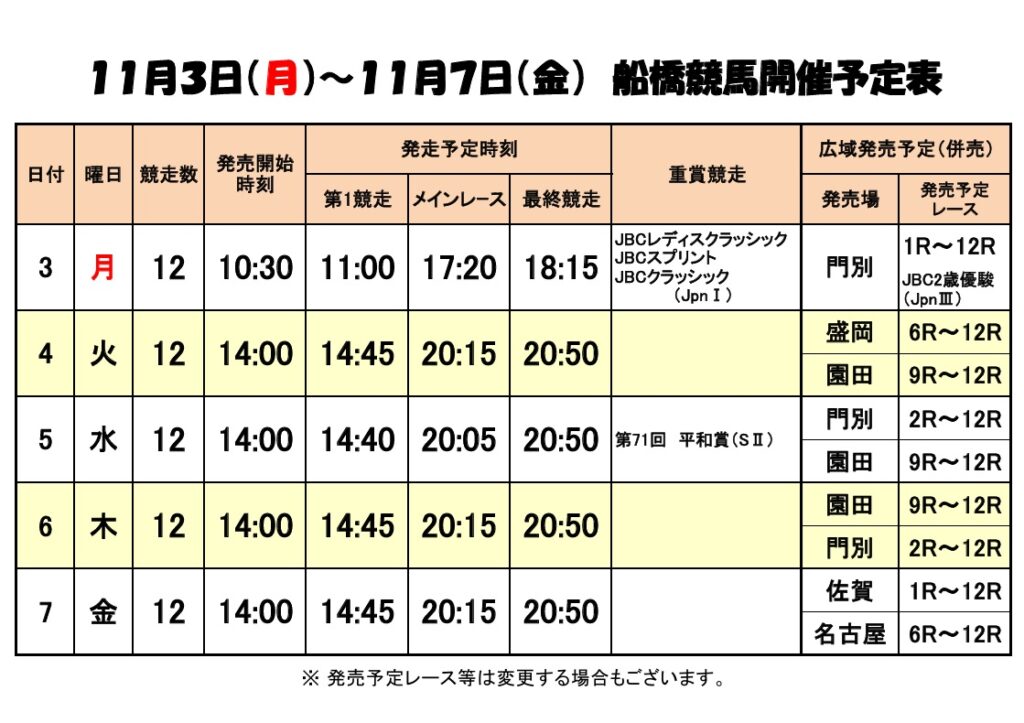 11月3日(月)~11月7日(金)開催予定